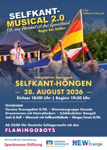 Selfkant-Musical 2.0 „Oh wie Heimat ist das Grenzland“ Integrativer Sportpark Höngen Einlass ab 18:00 Uhr + zum Google Calendar hinzufügen + iCal / Outlook export 00 Tage 00 Stunden 00 Minuten 00 Sekunden Datum 28.08.2026 Uhrzeit 19:30 Kategorie Höngen Diese Veranstaltung teilen